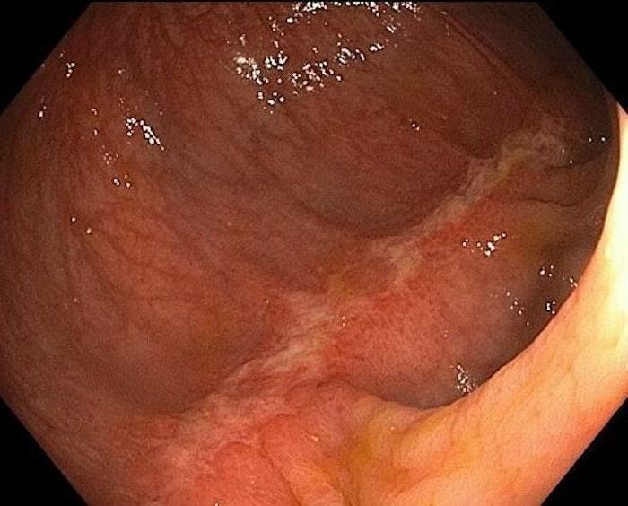 In mild ischemic colitis there are usually segmentally distributed patchy erythema, edema and subepithelial hemorrhages. In moderate colitis, in addition to changes seen in mild disease, there are localized erosions and ulcers, which may be confluent. Often, a linear ulcer in the mesenteric border of the colon is seen. This is known as colon single strip sign (CSSS) or Zuckerman’s sign (1).